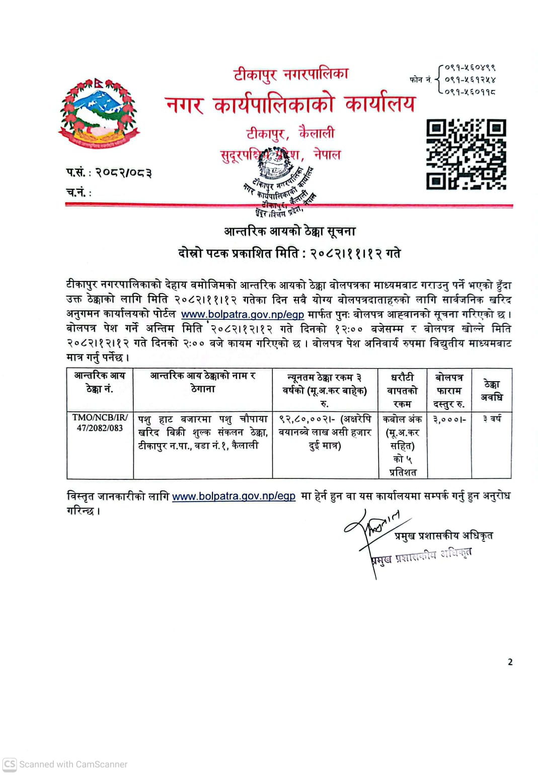 » आन्तरिक आय ठेक्काको पुनःबोलपत्र आह्वान सम्बन्धी सूचना।