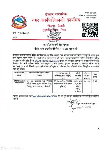 आन्तरिक आम्दानी सम्बन्धी ठेक्का सूचना: टीकापुर नगरपालिका वडा नं. ७ कार्यालयको शपिङ्ग कम्प्लेक्सको ठेक्का सम्बन्धी ।