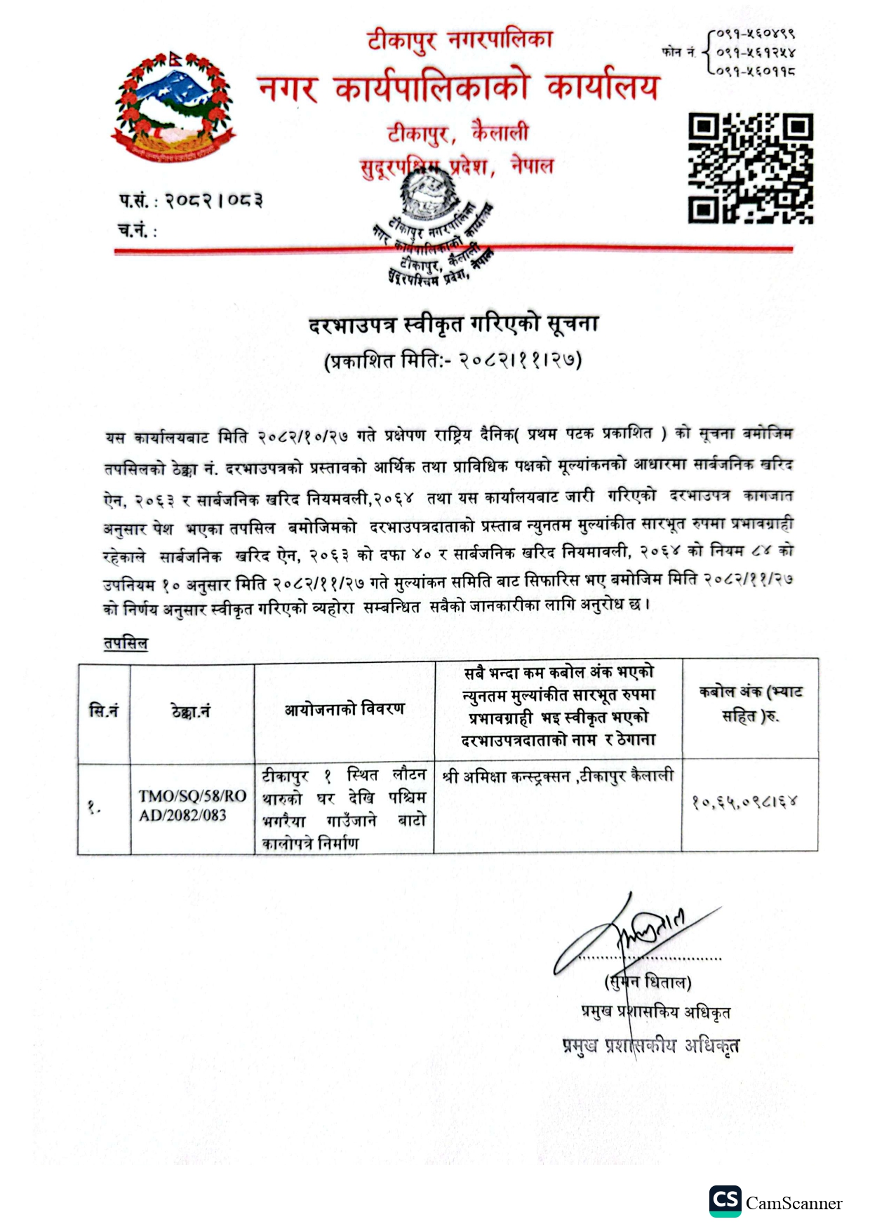 दरभाउपत्र स्वीकृत गरिएको सूचना।(२०८२.११.२७)