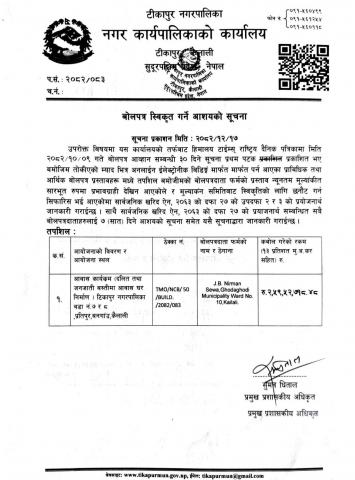 » बोलपत्र स्वीकृत गर्ने आशयको सूचना।(२०८२/१२/१७)