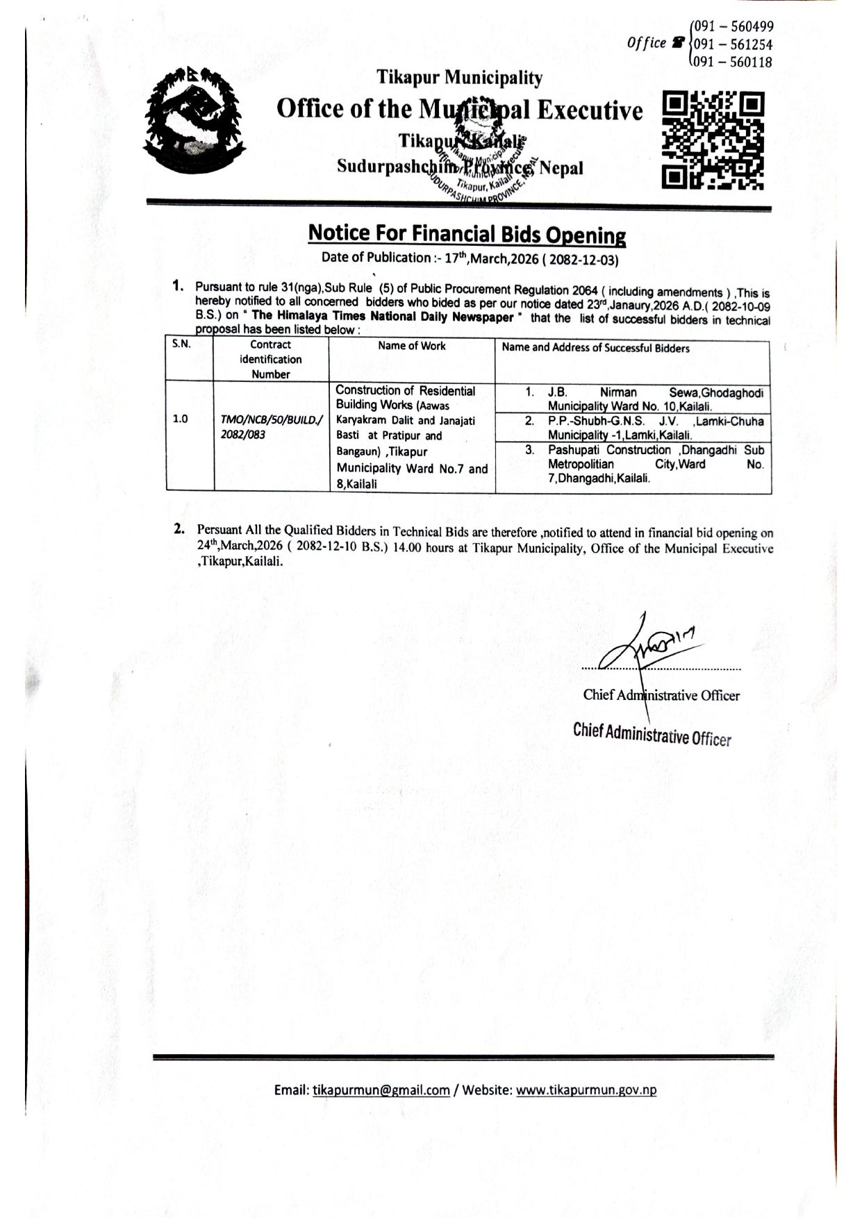 बोल पत्र स्वीकृत गर्ने आशयको सूचान।(२०८२.१२.०३)