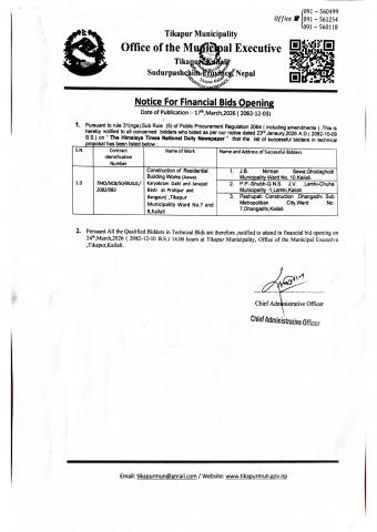 बोलपत्र स्वीकृत गर्ने आशयको सूचना (२०८२.१२.०३)