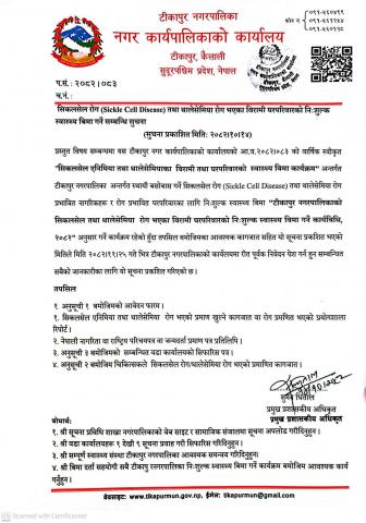 » सिकलसेल रोग तथा थालेसेमिया बिरामी तथा घर परिवारको निशुल्क स्वास्थ्य बिमा सम्बन्धि सुचना