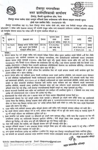 » टीकापुर बंगला पार्कमा रहेको फलफूल बगैँचाको ठेक्काको बोलपत्र आह्वान सम्बन्धी सुचना