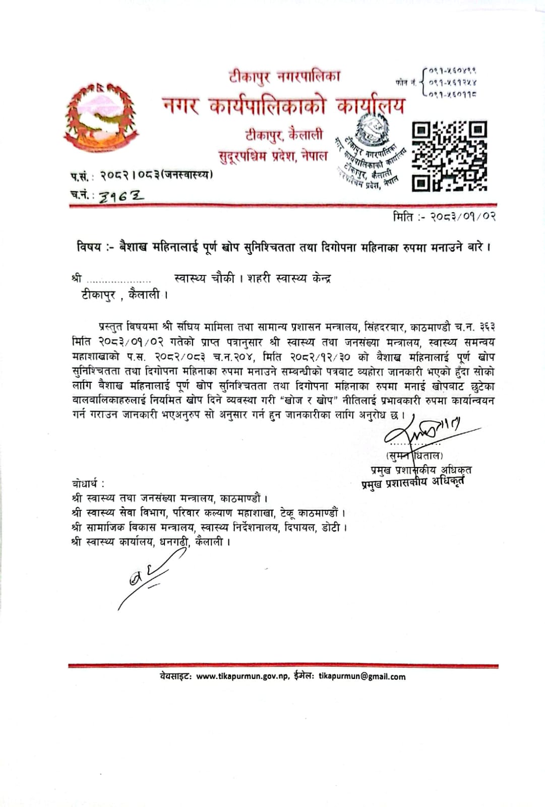 » वैशाख महिनालाई पूर्ण खोप सुनिश्चितता तथा दिगोपना महिनाका रूपमा मनाउने।